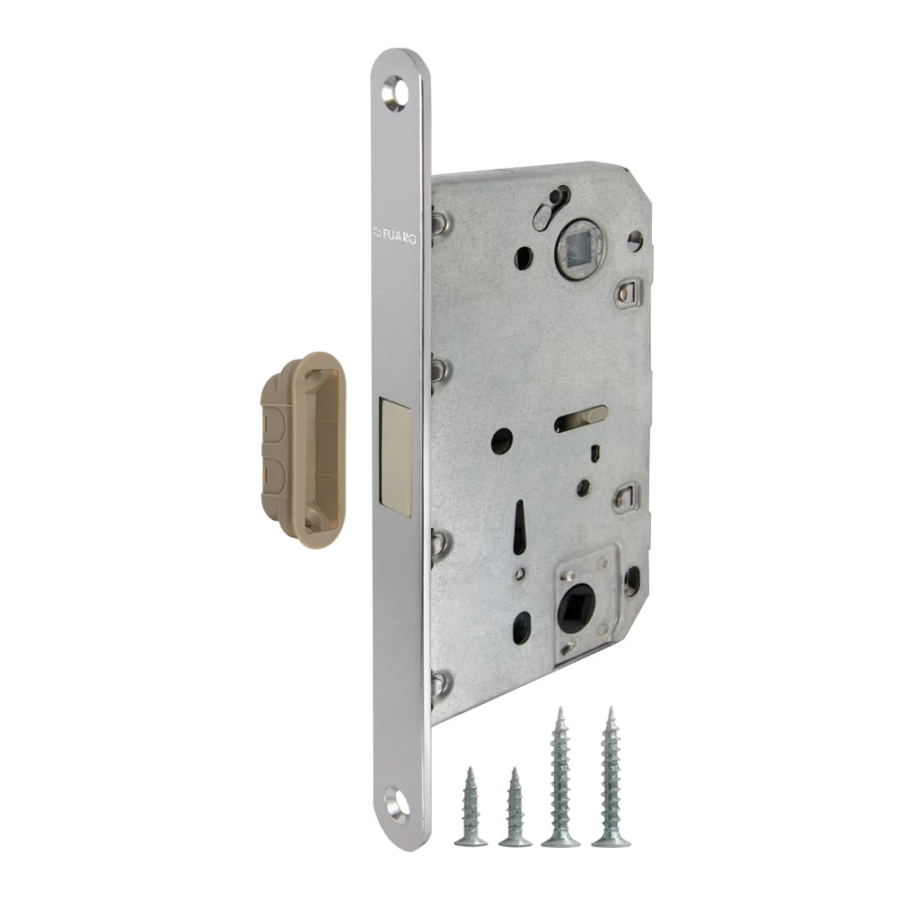 Бесшумная магнитная защелка Fuaro M96WC серии MAGNET изготовлена в соответствии с требованиями ГОСТ 5089-2011. Предназначена для установки в межкомнатные и сантехнические двери. Корпус выполнен из стали с надежным гальваническим покрытием. Магнитный механизм обеспечивает бесшумность работы защелки. Защелка M96WC с усиленным блоком пружин имеет высший 4 класс надежности (250 000 циклов открывания/закрывания). Отверстия под стяжные винты находятся на расстоянии 38 мм. Размер бэксета - 50 мм. Размер межосевого расстояния - 96 мм. Возможна установка дверных ручек на стяжные винты для более прочного крепления. В комплектацию входят: ответная планка и крепежная фурнитура в цвет изделия.