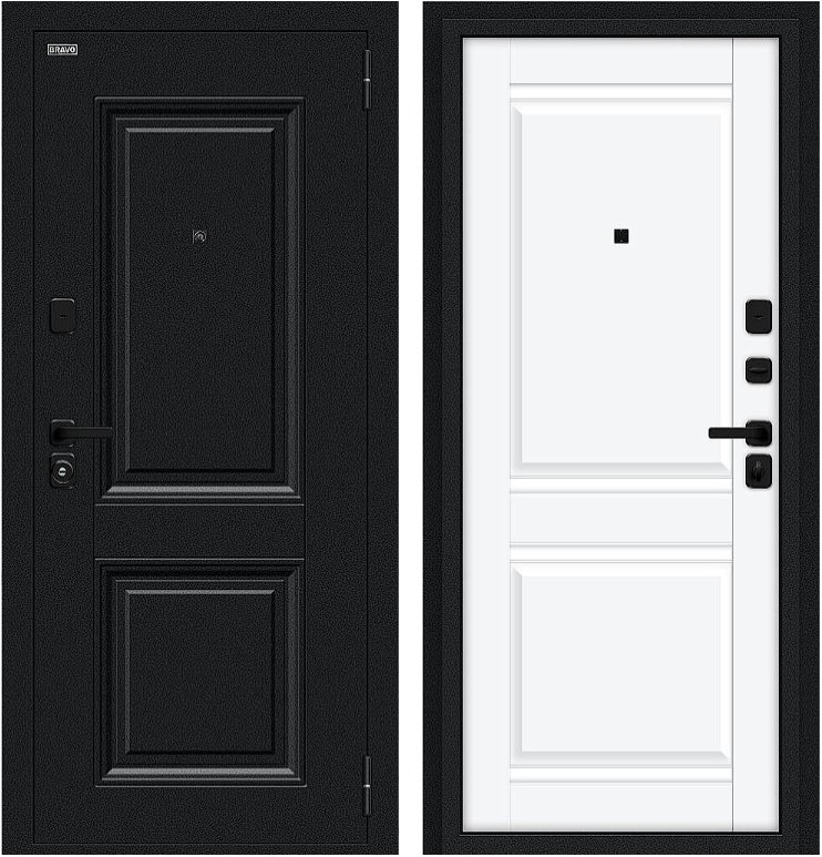 Надежная входная Дверь Браво Некст МФ/SBlack Букле черное/White Silk премиум класса по цене 35 969 руб. Большая толщина стали защитит от проникновения в ваш дом, квартиру или коттедж. Используется очень качественная фурнитура: замки, цилиндры, ручки, защелки. Покрытие и отделка двери изготовлено под внимательным контролем производителя. Дверь имеет долгий срок службы и гарантию.